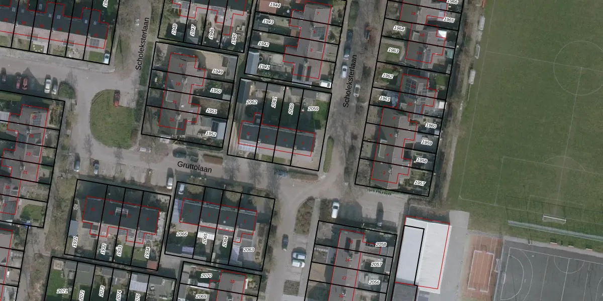 Gebruik de zoekbalk of klik op een perceel voor informatie over de adressen binnen dit perceel.