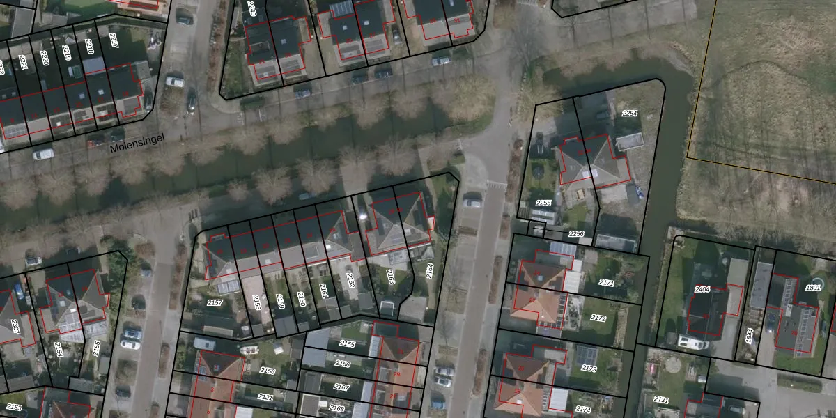 Gebruik de zoekbalk of klik op een perceel voor informatie over de adressen binnen dit perceel.