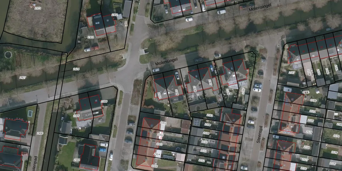 Gebruik de zoekbalk of klik op een perceel voor informatie over de adressen binnen dit perceel.