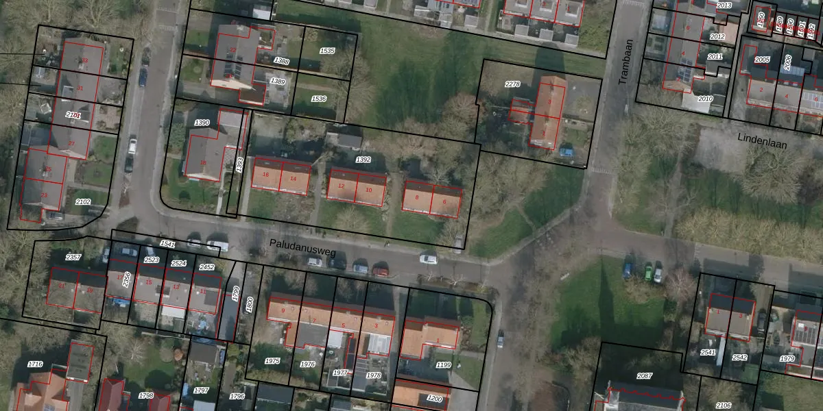 Het perceel waarop Paludanusweg 8 staat heeft een oppervlakte van 1452 m². Dit is een zeer groot perceel. De perceeloppervlakte wordt geregistreerd door het Kadaster. Gedetailleerde informatie over de maten van dit perceel kunt u vinden in het rapport Kadastrale kaart met maatvoering van Paludanusweg 8.