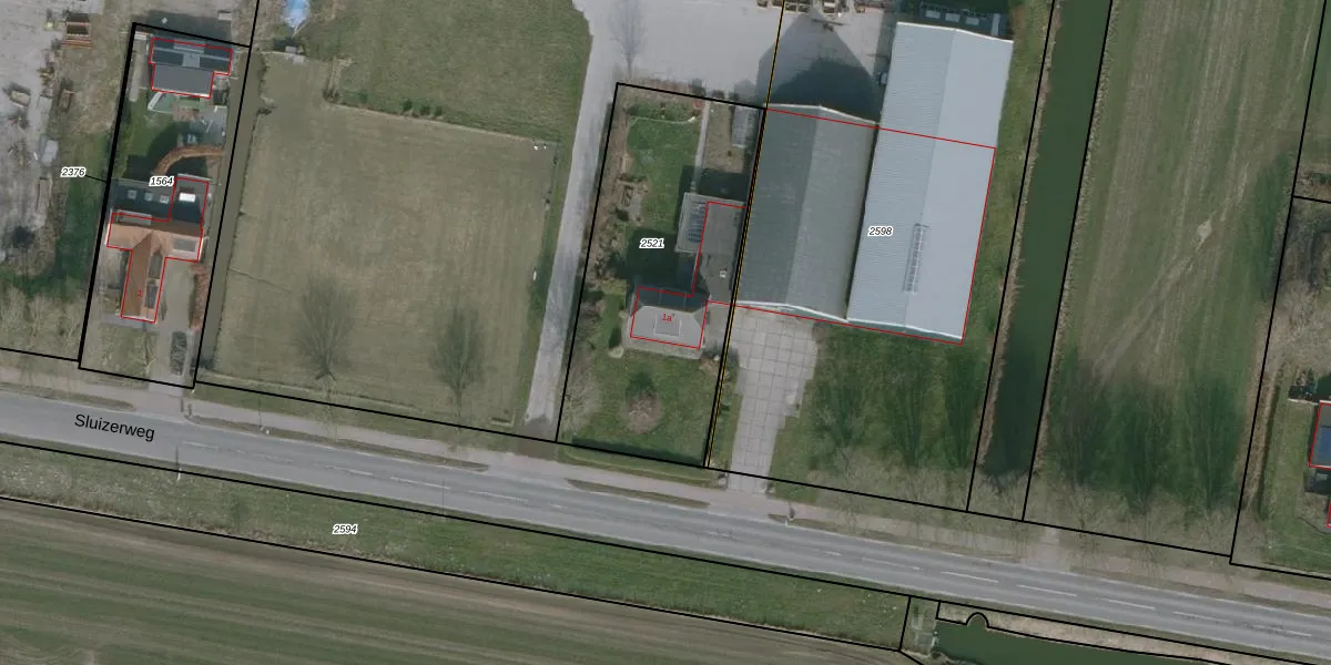 Het perceel waarop Sluizerweg 1-a staat heeft een oppervlakte van 1230 m². Dit is een zeer groot perceel. De perceeloppervlakte wordt geregistreerd door het Kadaster. Gedetailleerde informatie over de maten van dit perceel kunt u vinden in het rapport Kadastrale kaart met maatvoering van Sluizerweg 1-a.
