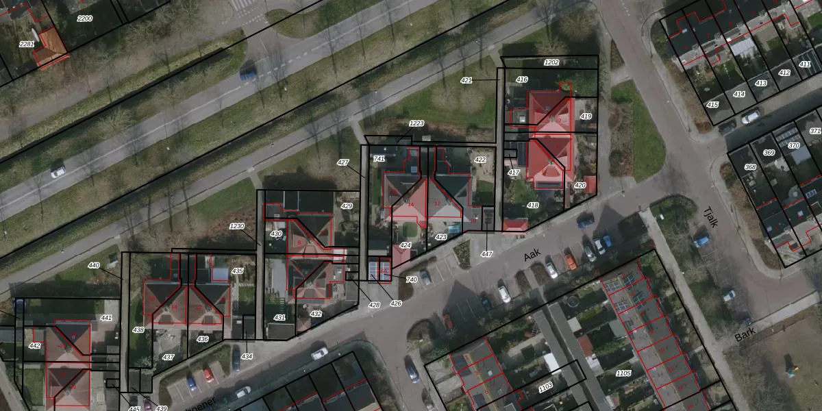 Het perceel waarop Aak 14 staat heeft een oppervlakte van 163 m². Dit is een middelgroot perceel. De perceeloppervlakte wordt geregistreerd door het Kadaster. Gedetailleerde informatie over de maten van dit perceel kunt u vinden in het rapport Kadastrale kaart met maatvoering van Aak 14.