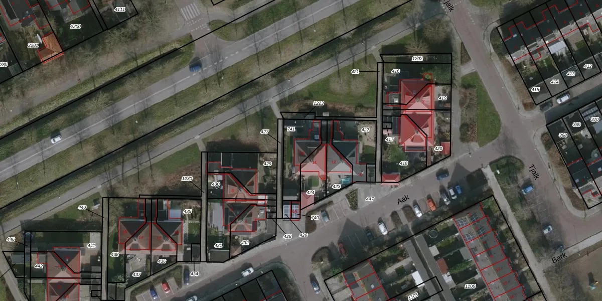 Het perceel waarop Aak 16 staat heeft een oppervlakte van 235 m². Dit is een middelgroot perceel. De perceeloppervlakte wordt geregistreerd door het Kadaster. Gedetailleerde informatie over de maten van dit perceel kunt u vinden in het rapport Kadastrale kaart met maatvoering van Aak 16.