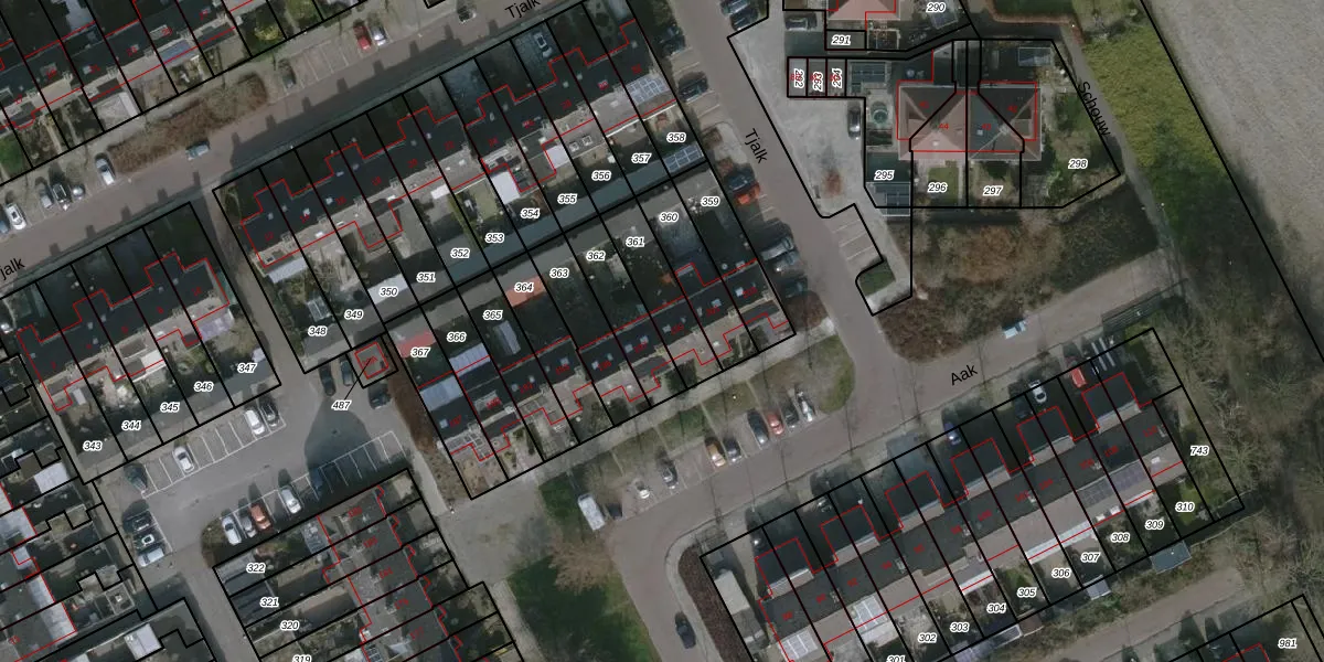 Het perceel waarop Aak 199 staat heeft een oppervlakte van 179 m². Dit is een middelgroot perceel. De perceeloppervlakte wordt geregistreerd door het Kadaster. Gedetailleerde informatie over de maten van dit perceel kunt u vinden in het rapport Kadastrale kaart met maatvoering van Aak 199.