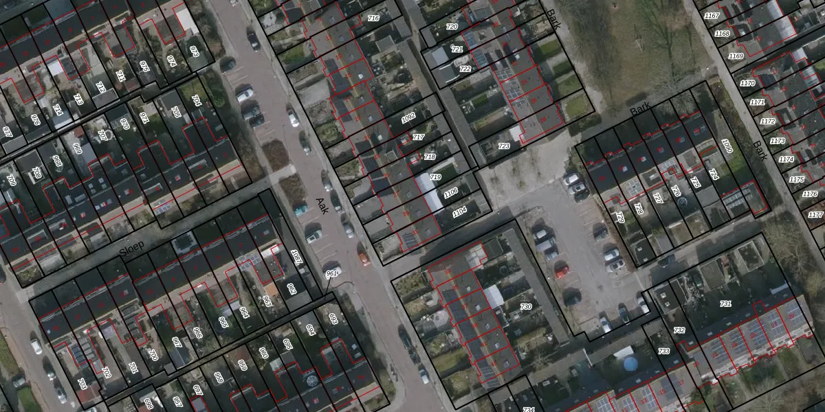 Gebruik de zoekbalk of klik op een perceel voor informatie over de adressen binnen dit perceel.
