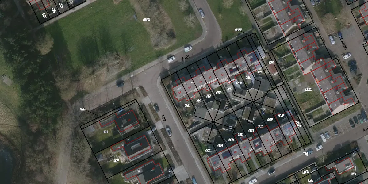Gebruik de zoekbalk of klik op een perceel voor informatie over de adressen binnen dit perceel.