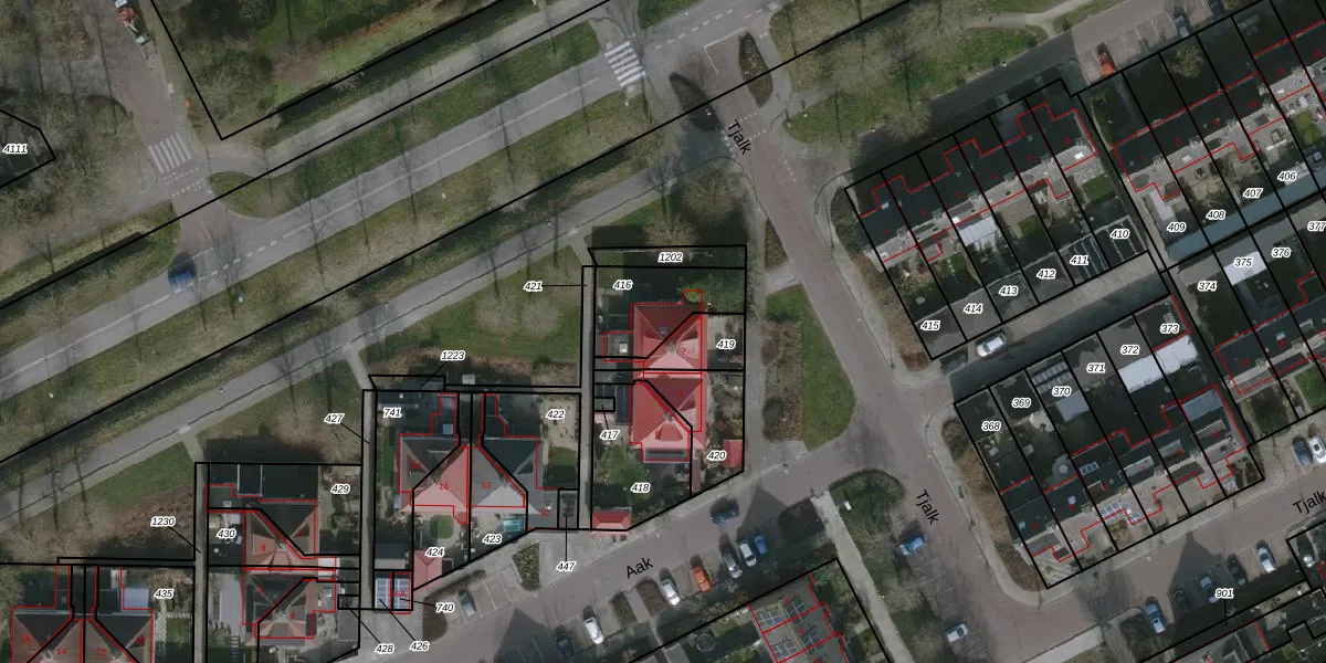 Het perceel waarop Aak 8 staat heeft een oppervlakte van 233 m². Dit is een middelgroot perceel. De perceeloppervlakte wordt geregistreerd door het Kadaster. Gedetailleerde informatie over de maten van dit perceel kunt u vinden in het rapport Kadastrale kaart met maatvoering van Aak 8.