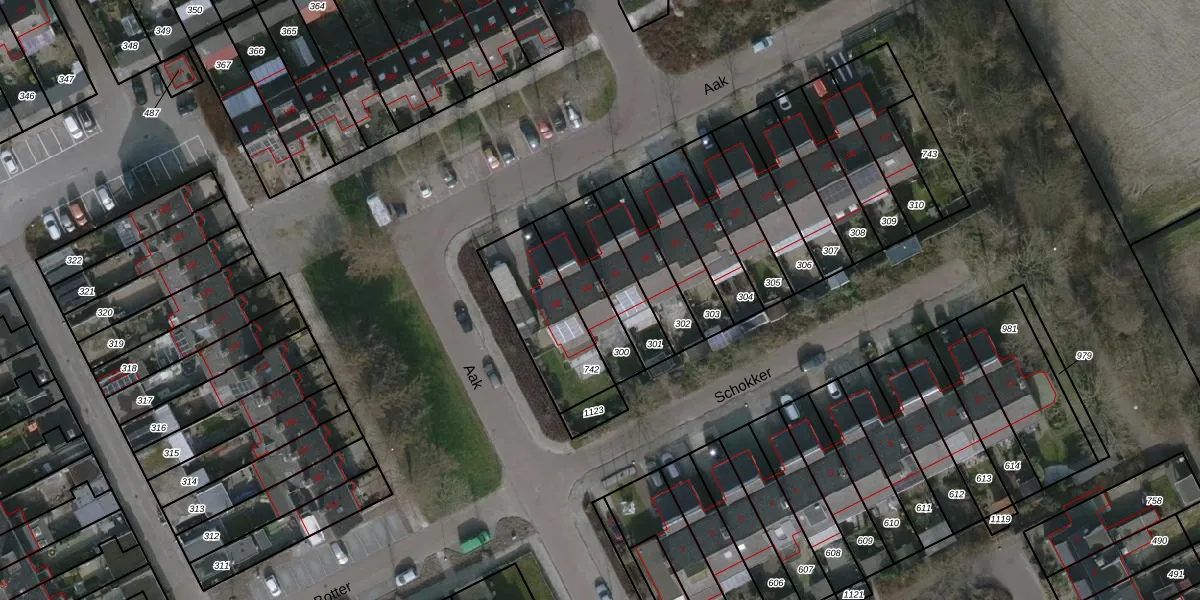 Het perceel waarop Aak 90 staat heeft een oppervlakte van 169 m². Dit is een middelgroot perceel. De perceeloppervlakte wordt geregistreerd door het Kadaster. Gedetailleerde informatie over de maten van dit perceel kunt u vinden in het rapport Kadastrale kaart met maatvoering van Aak 90.