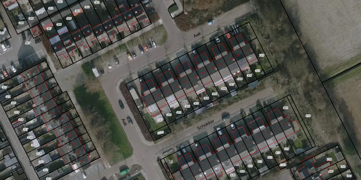 Het perceel waarop Aak 94 staat heeft een oppervlakte van 169 m². Dit is een middelgroot perceel. De perceeloppervlakte wordt geregistreerd door het Kadaster. Gedetailleerde informatie over de maten van dit perceel kunt u vinden in het rapport Kadastrale kaart met maatvoering van Aak 94.