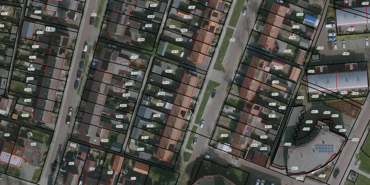 Gebruik de zoekbalk of klik op een perceel voor informatie over de adressen binnen dit perceel.