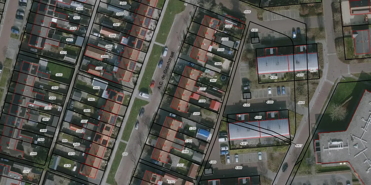 Gebruik de zoekbalk of klik op een perceel voor informatie over de adressen binnen dit perceel.