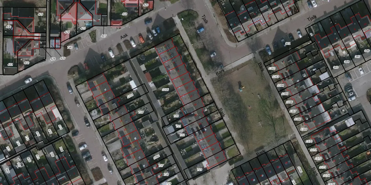 Het perceel waarop Bark 12 staat heeft een oppervlakte van 2941 m². Dit is een zeer groot perceel. De perceeloppervlakte wordt geregistreerd door het Kadaster. Gedetailleerde informatie over de maten van dit perceel kunt u vinden in het rapport Kadastrale kaart met maatvoering van Bark 12.