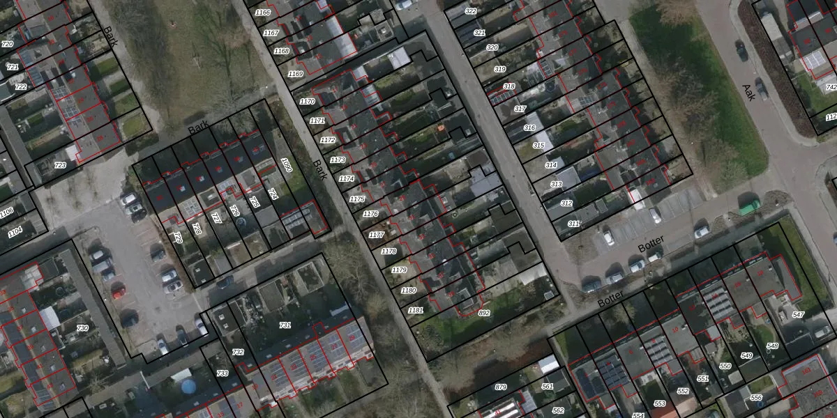 Gebruik de zoekbalk of klik op een perceel voor informatie over de adressen binnen dit perceel.