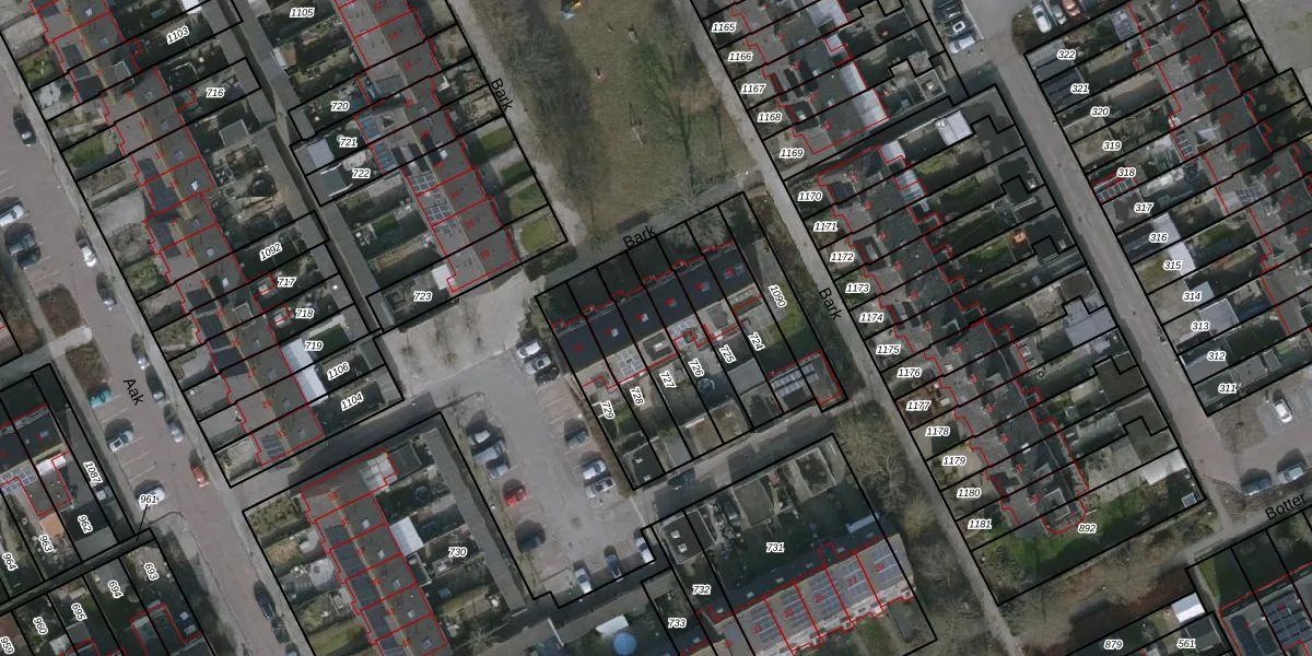 Gebruik de zoekbalk of klik op een perceel voor informatie over de adressen binnen dit perceel.