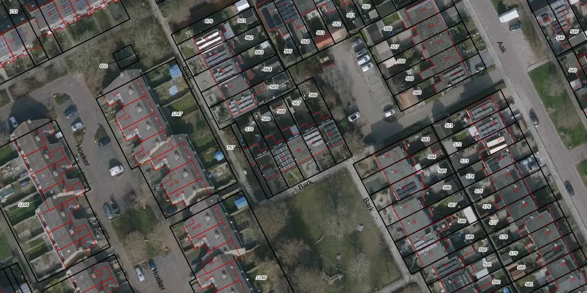 Het perceel waarop Bark 55 staat heeft een oppervlakte van 173 m². Dit is een middelgroot perceel. De perceeloppervlakte wordt geregistreerd door het Kadaster. Gedetailleerde informatie over de maten van dit perceel kunt u vinden in het rapport Kadastrale kaart met maatvoering van Bark 55.