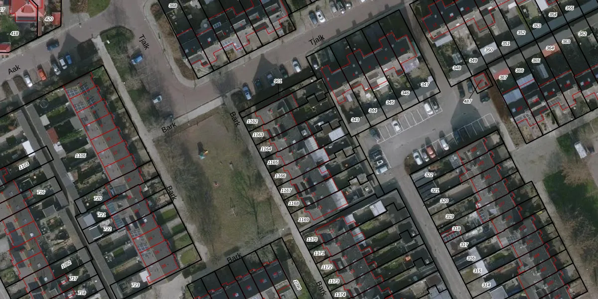 Gebruik de zoekbalk of klik op een perceel voor informatie over de adressen binnen dit perceel.