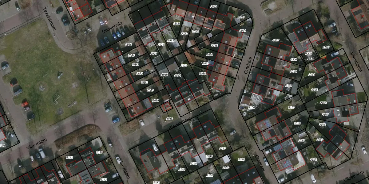 Gebruik de zoekbalk of klik op een perceel voor informatie over de adressen binnen dit perceel.