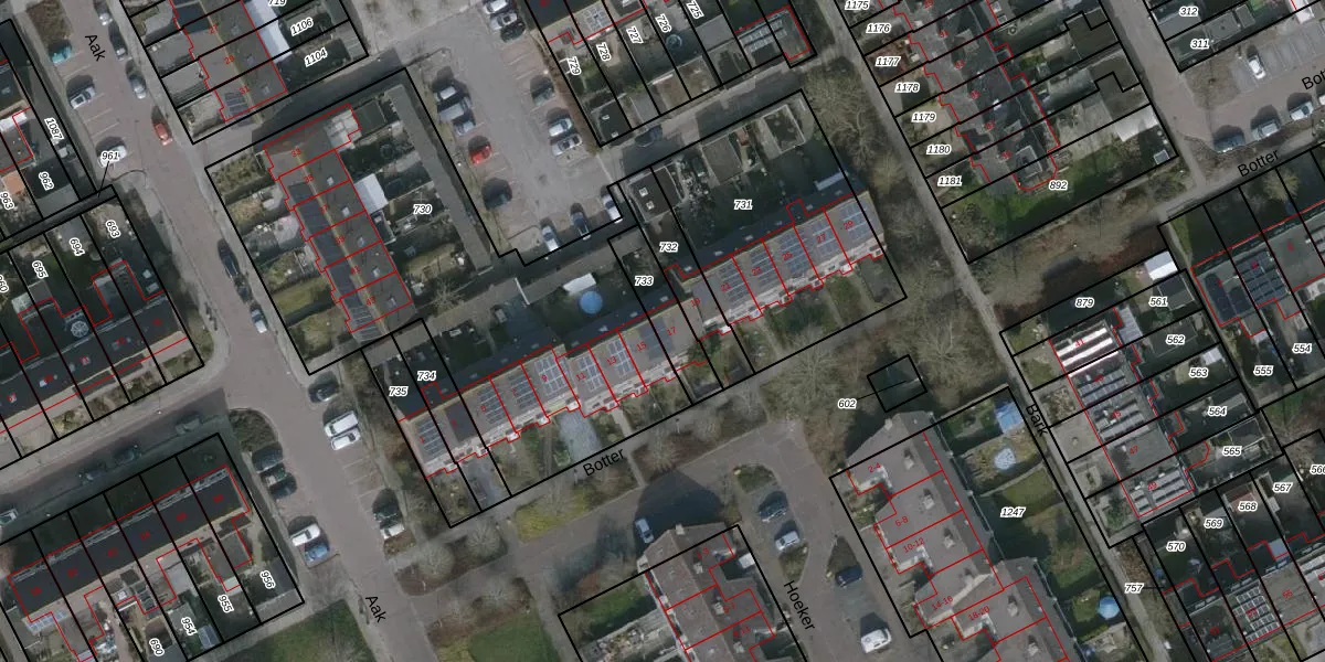 Het perceel waarop Botter 17 staat heeft een oppervlakte van 145 m². Dit is een middelgroot perceel. De perceeloppervlakte wordt geregistreerd door het Kadaster. Gedetailleerde informatie over de maten van dit perceel kunt u vinden in het rapport Kadastrale kaart met maatvoering van Botter 17.