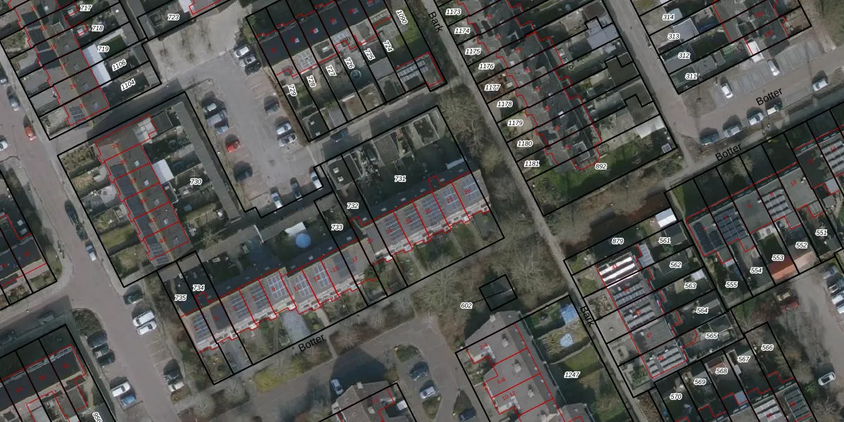 Het perceel waarop Botter 25 staat heeft een oppervlakte van 903 m². Dit is een groot perceel. De perceeloppervlakte wordt geregistreerd door het Kadaster. Gedetailleerde informatie over de maten van dit perceel kunt u vinden in het rapport Kadastrale kaart met maatvoering van Botter 25.