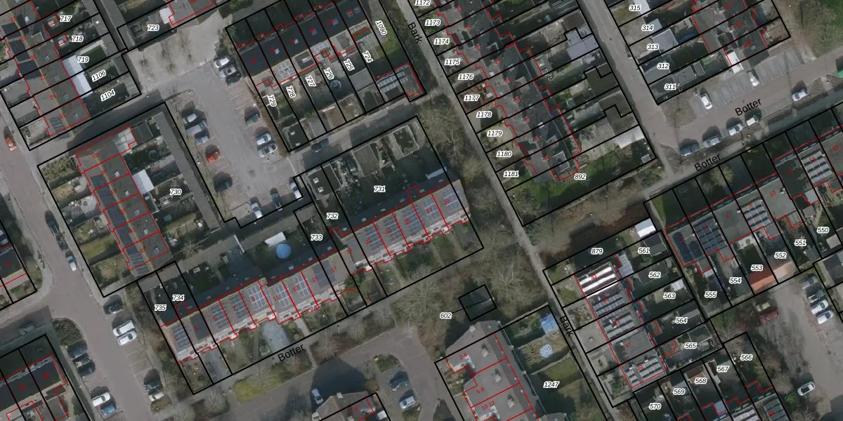 Het perceel waarop Botter 27 staat heeft een oppervlakte van 903 m². Dit is een groot perceel. De perceeloppervlakte wordt geregistreerd door het Kadaster. Gedetailleerde informatie over de maten van dit perceel kunt u vinden in het rapport Kadastrale kaart met maatvoering van Botter 27.