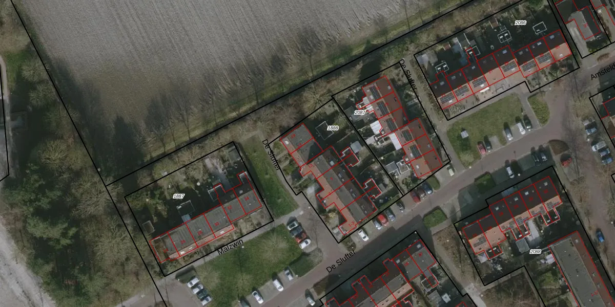 Het perceel waarop De Slufter 17 staat heeft een oppervlakte van 1043 m². Dit is een zeer groot perceel. De perceeloppervlakte wordt geregistreerd door het Kadaster. Gedetailleerde informatie over de maten van dit perceel kunt u vinden in het rapport Kadastrale kaart met maatvoering van De Slufter 17.