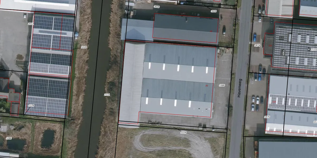 Het perceel waarop Havenweg 20 staat heeft een oppervlakte van 3545 m². Dit is een zeer groot perceel. De perceeloppervlakte wordt geregistreerd door het Kadaster. Gedetailleerde informatie over de maten van dit perceel kunt u vinden in het rapport Kadastrale kaart met maatvoering van Havenweg 20.