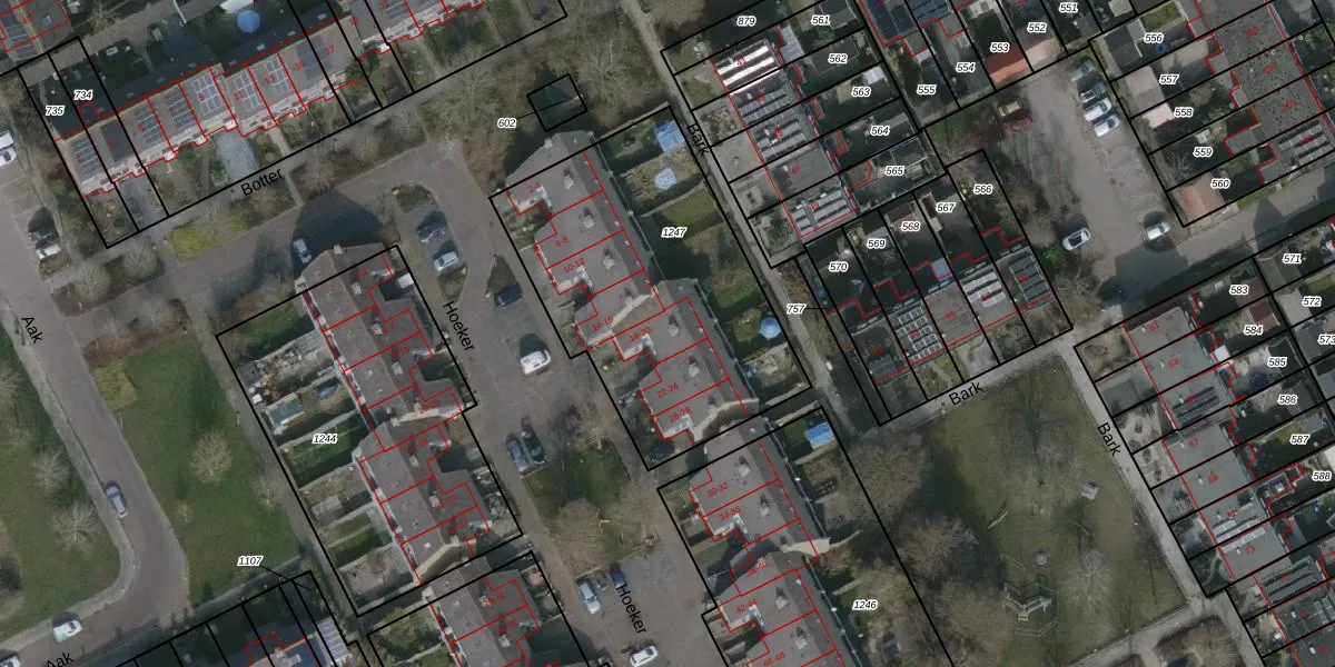 Het perceel waarop Hoeker 20 staat heeft een oppervlakte van 1375 m². Dit is een zeer groot perceel. De perceeloppervlakte wordt geregistreerd door het Kadaster. Gedetailleerde informatie over de maten van dit perceel kunt u vinden in het rapport Kadastrale kaart met maatvoering van Hoeker 20.