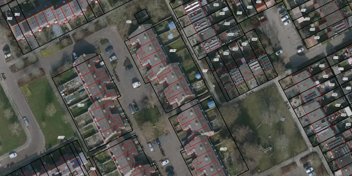 Het perceel waarop Hoeker 24 staat heeft een oppervlakte van 1375 m². Dit is een zeer groot perceel. De perceeloppervlakte wordt geregistreerd door het Kadaster. Gedetailleerde informatie over de maten van dit perceel kunt u vinden in het rapport Kadastrale kaart met maatvoering van Hoeker 24.