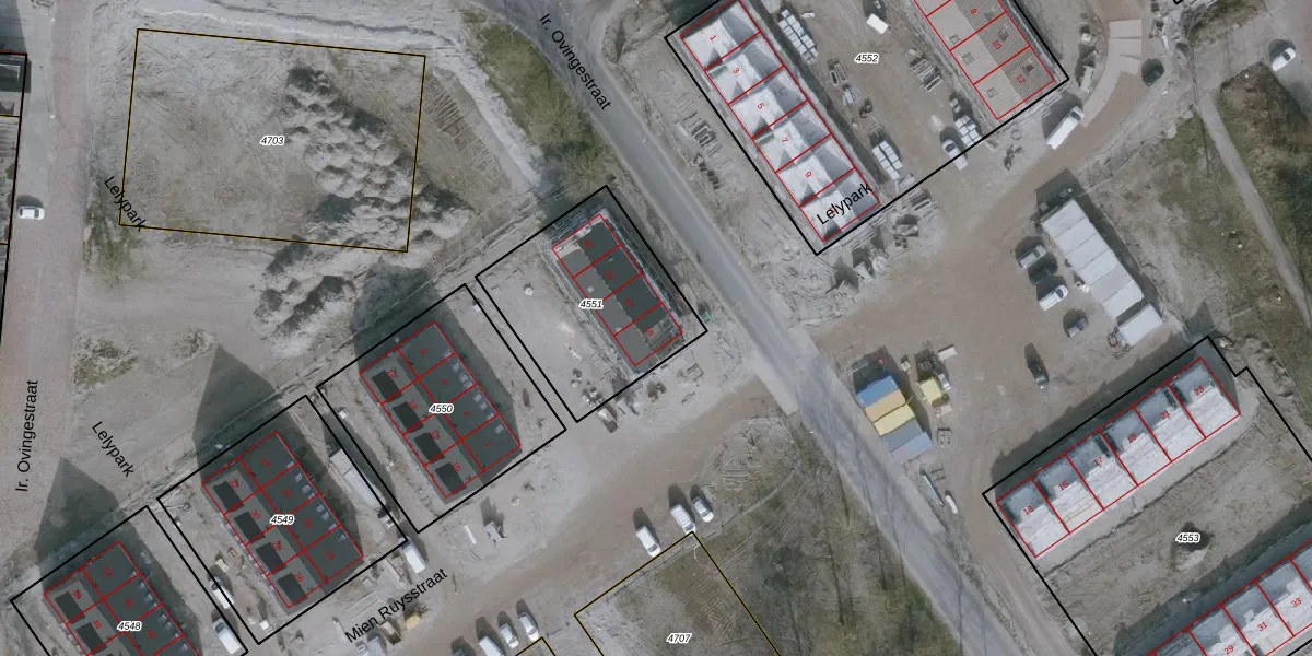 Het perceel waarop Ir. Ovingestraat 16 staat heeft een oppervlakte van 655 m². Dit is een groot perceel. De perceeloppervlakte wordt geregistreerd door het Kadaster. Gedetailleerde informatie over de maten van dit perceel kunt u vinden in het rapport Kadastrale kaart met maatvoering van Ir. Ovingestraat 16.