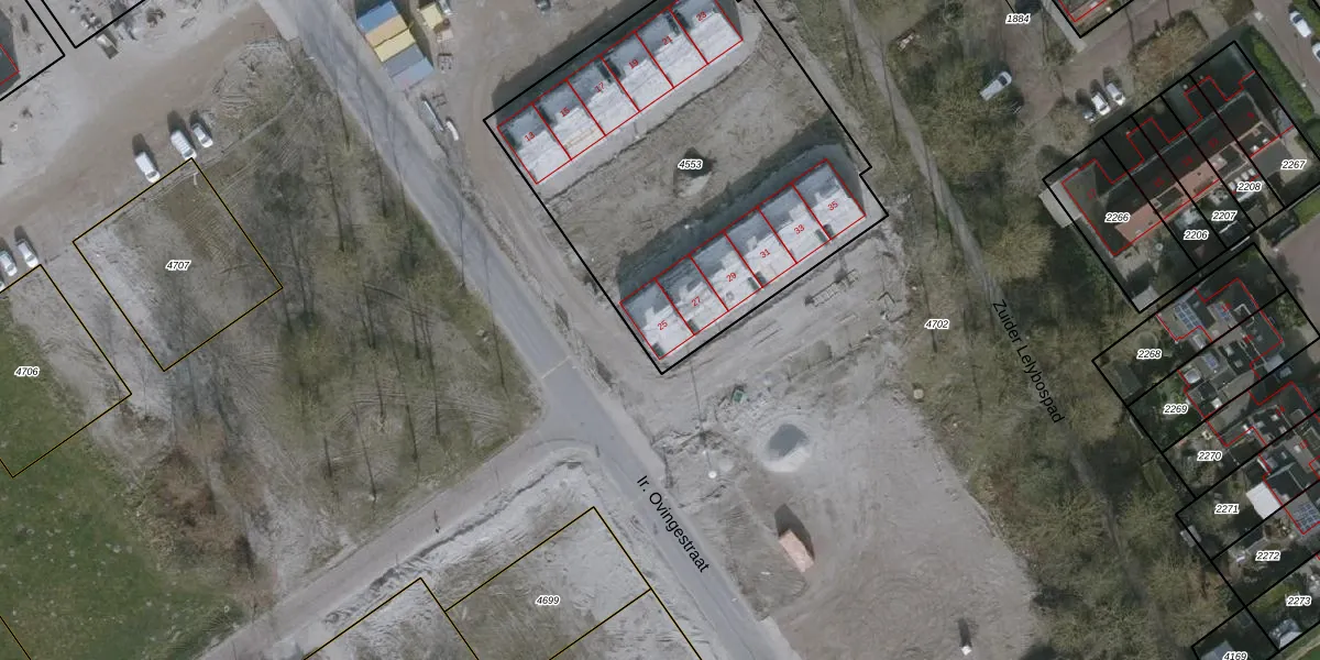 Ir. Ovingestraat 25 is gelegen op kadastraal perceel WRG03I4553. Deze kadastrale aanduiding is uniek en wordt gebruikt door het Kadaster om eigendomsrechten en andere zakelijke rechten vast te leggen. Het perceel maakt onderdeel uit van de kadastrale gemeente Wieringermeer.