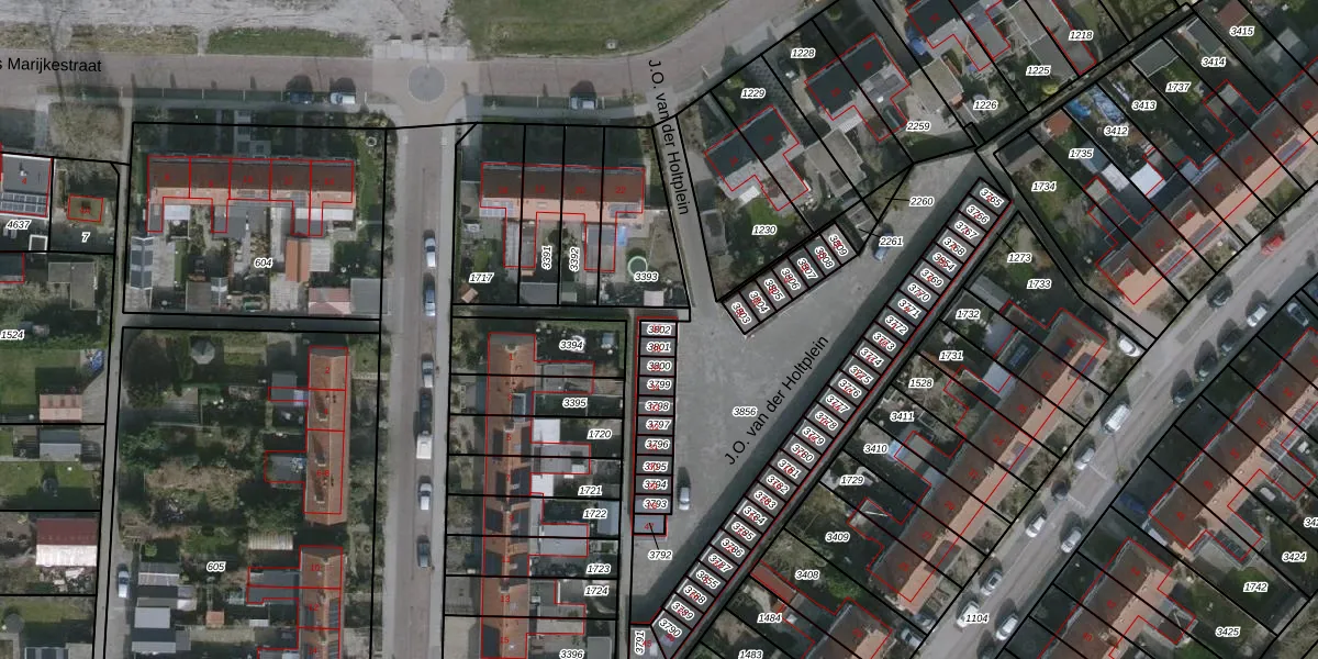 Het perceel waarop J.O. van der Holtplein 37 staat heeft een oppervlakte van 18 m². Dit is een klein perceel. De perceeloppervlakte wordt geregistreerd door het Kadaster. Gedetailleerde informatie over de maten van dit perceel kunt u vinden in het rapport Kadastrale kaart met maatvoering van J.O. van der Holtplein 37.
