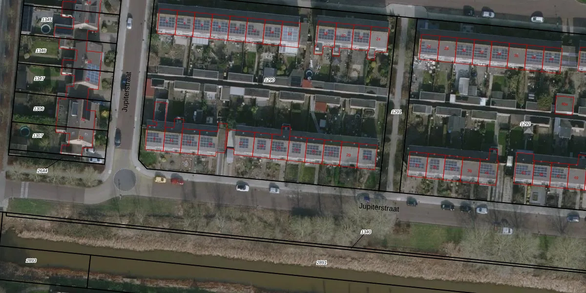 Het perceel waarop Jupiterstraat 23 staat heeft een oppervlakte van 4891 m². Dit is een zeer groot perceel. De perceeloppervlakte wordt geregistreerd door het Kadaster. Gedetailleerde informatie over de maten van dit perceel kunt u vinden in het rapport Kadastrale kaart met maatvoering van Jupiterstraat 23.