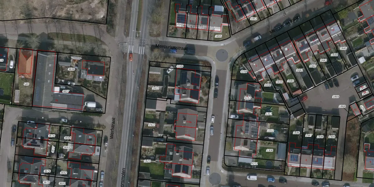 Het perceel waarop Jupiterstraat 4 staat heeft een oppervlakte van 595 m². Dit is een groot perceel. De perceeloppervlakte wordt geregistreerd door het Kadaster. Gedetailleerde informatie over de maten van dit perceel kunt u vinden in het rapport Kadastrale kaart met maatvoering van Jupiterstraat 4.