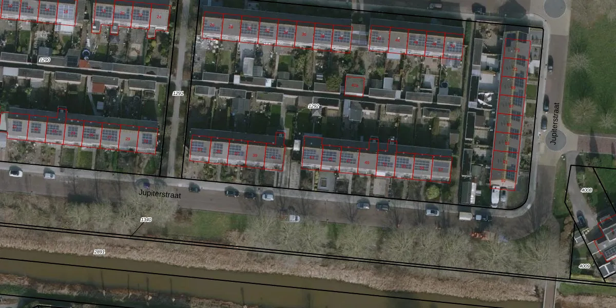 Het perceel waarop Jupiterstraat 43 staat heeft een oppervlakte van 6642 m². Dit is een zeer groot perceel. De perceeloppervlakte wordt geregistreerd door het Kadaster. Gedetailleerde informatie over de maten van dit perceel kunt u vinden in het rapport Kadastrale kaart met maatvoering van Jupiterstraat 43.
