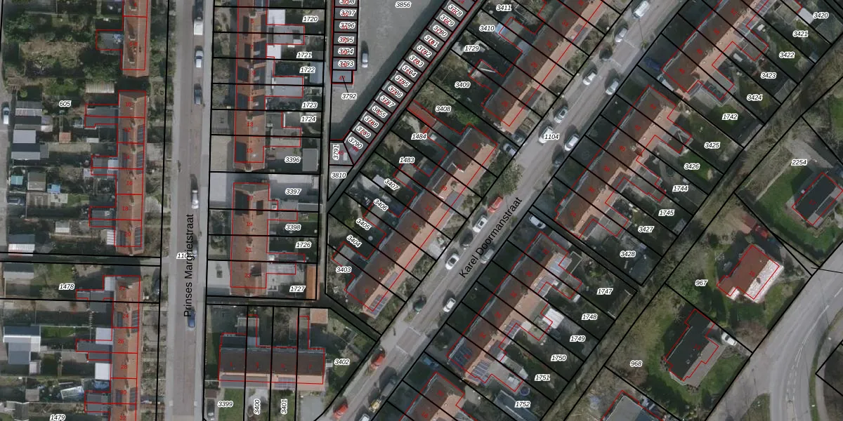Gebruik de zoekbalk of klik op een perceel voor informatie over de adressen binnen dit perceel.