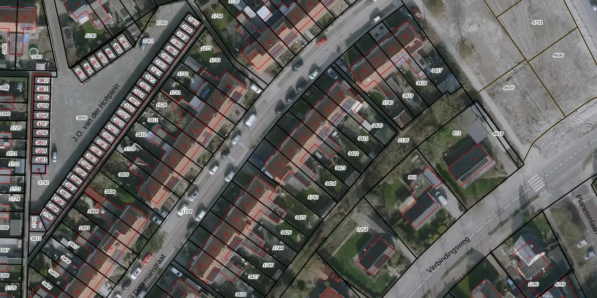 Gebruik de zoekbalk of klik op een perceel voor informatie over de adressen binnen dit perceel.