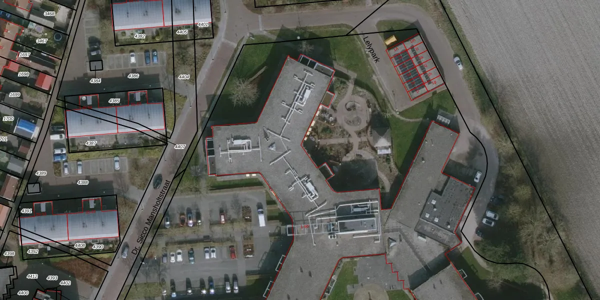 Het perceel waarop Lelypark 1-k-7 staat heeft een oppervlakte van 1,5 ha. Dit is een zeer groot perceel. De perceeloppervlakte wordt geregistreerd door het Kadaster. Gedetailleerde informatie over de maten van dit perceel kunt u vinden in het rapport Kadastrale kaart met maatvoering van Lelypark 1-k-7.