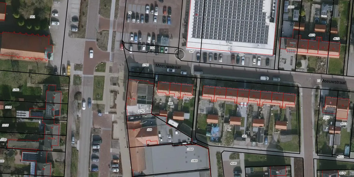 Het perceel waarop Meeuwstraat 3 staat heeft een oppervlakte van 672 m². Dit is een groot perceel. De perceeloppervlakte wordt geregistreerd door het Kadaster. Gedetailleerde informatie over de maten van dit perceel kunt u vinden in het rapport Kadastrale kaart met maatvoering van Meeuwstraat 3.