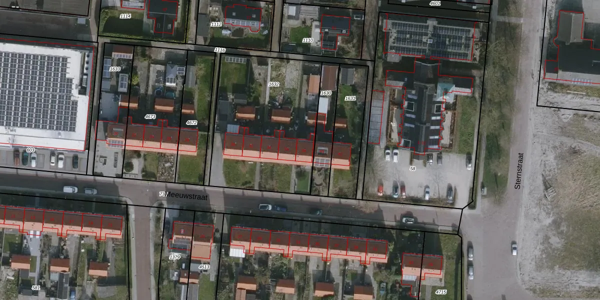 Het perceel waarop Meeuwstraat 38 staat heeft een oppervlakte van 1486 m². Dit is een zeer groot perceel. De perceeloppervlakte wordt geregistreerd door het Kadaster. Gedetailleerde informatie over de maten van dit perceel kunt u vinden in het rapport Kadastrale kaart met maatvoering van Meeuwstraat 38.