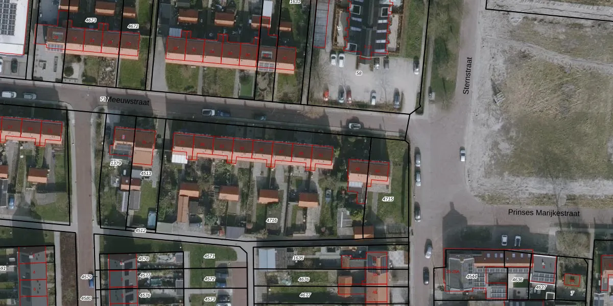 Het perceel waarop Meeuwstraat 39 staat heeft een oppervlakte van 2439 m². Dit is een zeer groot perceel. De perceeloppervlakte wordt geregistreerd door het Kadaster. Gedetailleerde informatie over de maten van dit perceel kunt u vinden in het rapport Kadastrale kaart met maatvoering van Meeuwstraat 39.