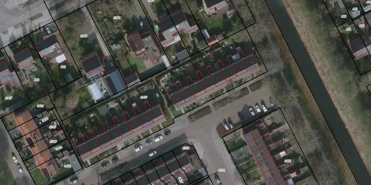 Het perceel waarop Neptunusstraat 19 staat heeft een oppervlakte van 3017 m². Dit is een zeer groot perceel. De perceeloppervlakte wordt geregistreerd door het Kadaster. Gedetailleerde informatie over de maten van dit perceel kunt u vinden in het rapport Kadastrale kaart met maatvoering van Neptunusstraat 19.