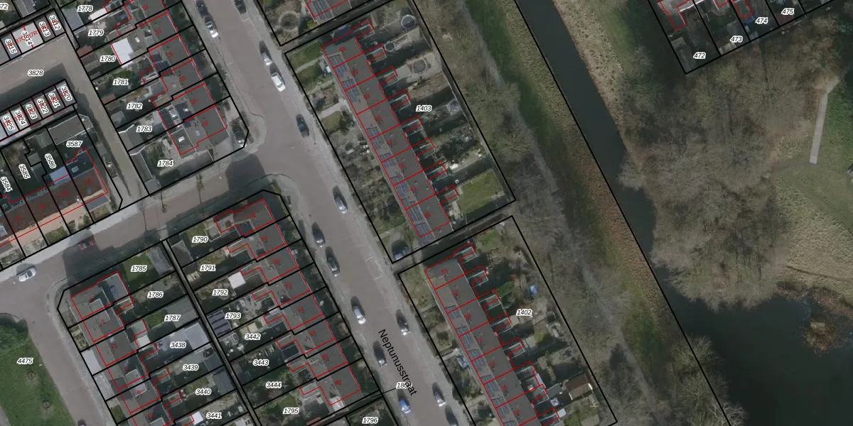 Het perceel waarop Neptunusstraat 63 staat heeft een oppervlakte van 1793 m². Dit is een zeer groot perceel. De perceeloppervlakte wordt geregistreerd door het Kadaster. Gedetailleerde informatie over de maten van dit perceel kunt u vinden in het rapport Kadastrale kaart met maatvoering van Neptunusstraat 63.
