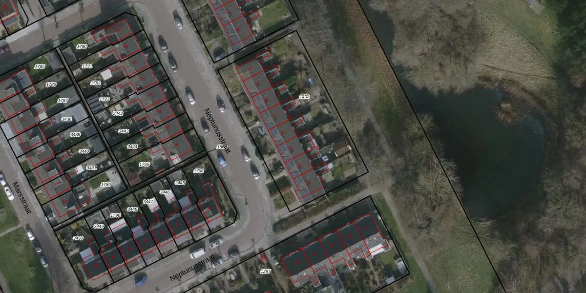 Het perceel waarop Neptunusstraat 75 staat heeft een oppervlakte van 1656 m². Dit is een zeer groot perceel. De perceeloppervlakte wordt geregistreerd door het Kadaster. Gedetailleerde informatie over de maten van dit perceel kunt u vinden in het rapport Kadastrale kaart met maatvoering van Neptunusstraat 75.