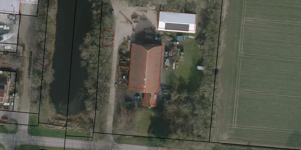 Het adres ligt op het perceel WRG03-L-67, dat zich in de kadastrale gemeente Wieringermeer bevindt. Het perceel is 7750 m² groot. Dat is kleiner dan de gemiddelde perceeloppervlakte in Wieringermeer, dat op 3,1 ha ligt. Het grootste perceel in de kadastrale gemeente is 57,62 km². Het kleinste perceel heeft een oppervlakte van 0 m². Op het perceel liggen in totaal 2 adressen. De laatste wijziging in het de Basisregistratie Kadaster (BRK) was op 22-05-2001.