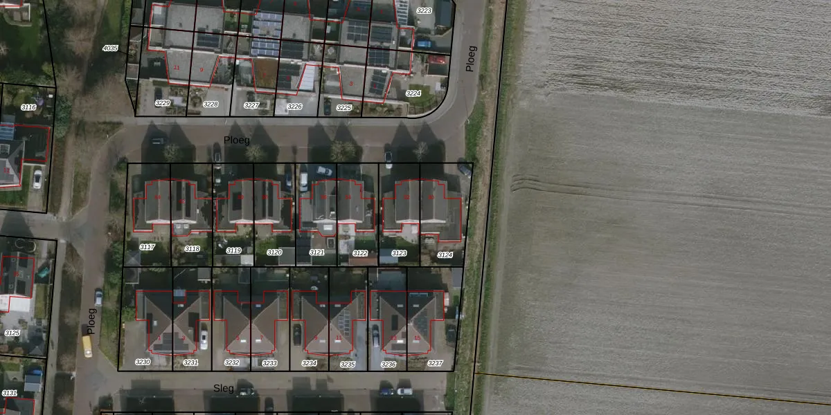 Het perceel waarop Ploeg 32 staat heeft een oppervlakte van 250 m². Dit is een middelgroot perceel. De perceeloppervlakte wordt geregistreerd door het Kadaster. Gedetailleerde informatie over de maten van dit perceel kunt u vinden in het rapport Kadastrale kaart met maatvoering van Ploeg 32.