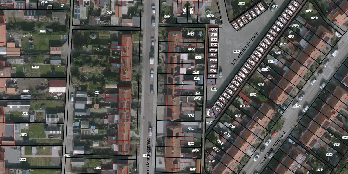 Gebruik de zoekbalk of klik op een perceel voor informatie over de adressen binnen dit perceel.