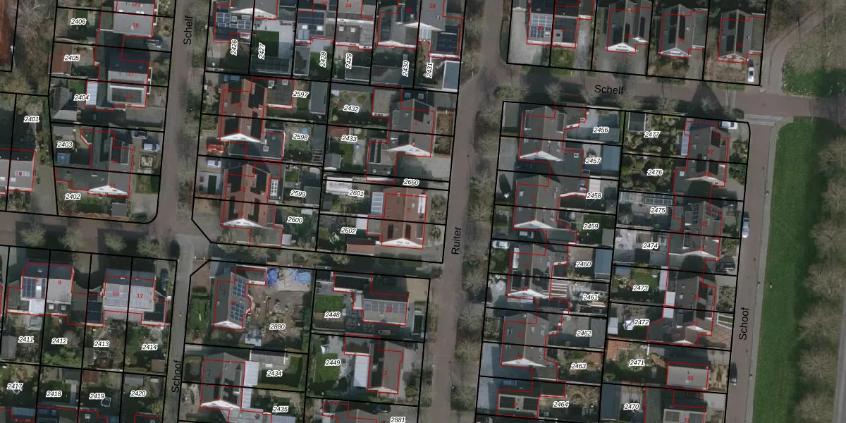 Gebruik de zoekbalk of klik op een perceel voor informatie over de adressen binnen dit perceel.