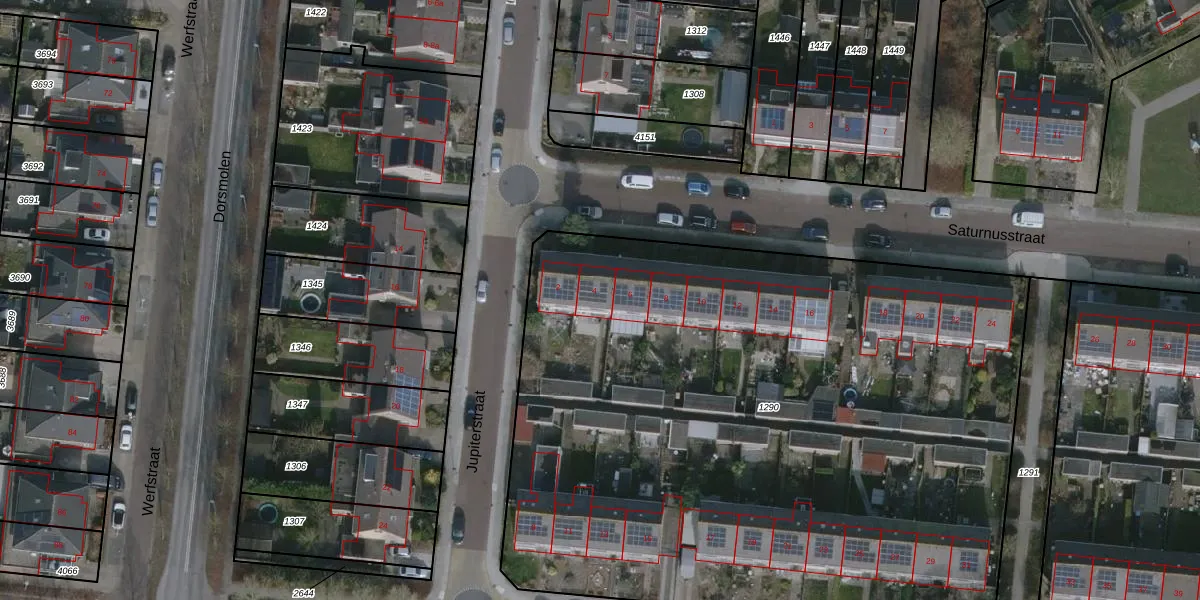 Het perceel waarop Saturnusstraat 4 staat heeft een oppervlakte van 4891 m². Dit is een zeer groot perceel. De perceeloppervlakte wordt geregistreerd door het Kadaster. Gedetailleerde informatie over de maten van dit perceel kunt u vinden in het rapport Kadastrale kaart met maatvoering van Saturnusstraat 4.