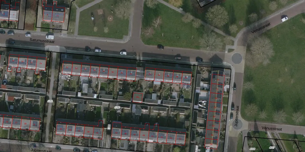 Het perceel waarop Saturnusstraat 42 staat heeft een oppervlakte van 6642 m². Dit is een zeer groot perceel. De perceeloppervlakte wordt geregistreerd door het Kadaster. Gedetailleerde informatie over de maten van dit perceel kunt u vinden in het rapport Kadastrale kaart met maatvoering van Saturnusstraat 42.