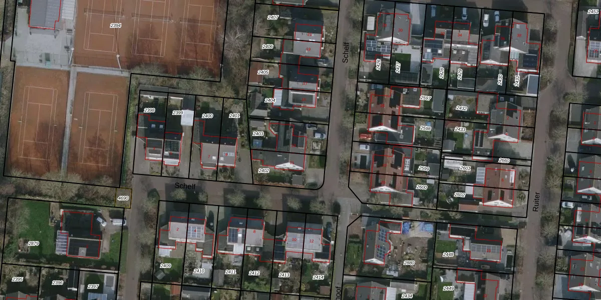 Gebruik de zoekbalk of klik op een perceel voor informatie over de adressen binnen dit perceel.